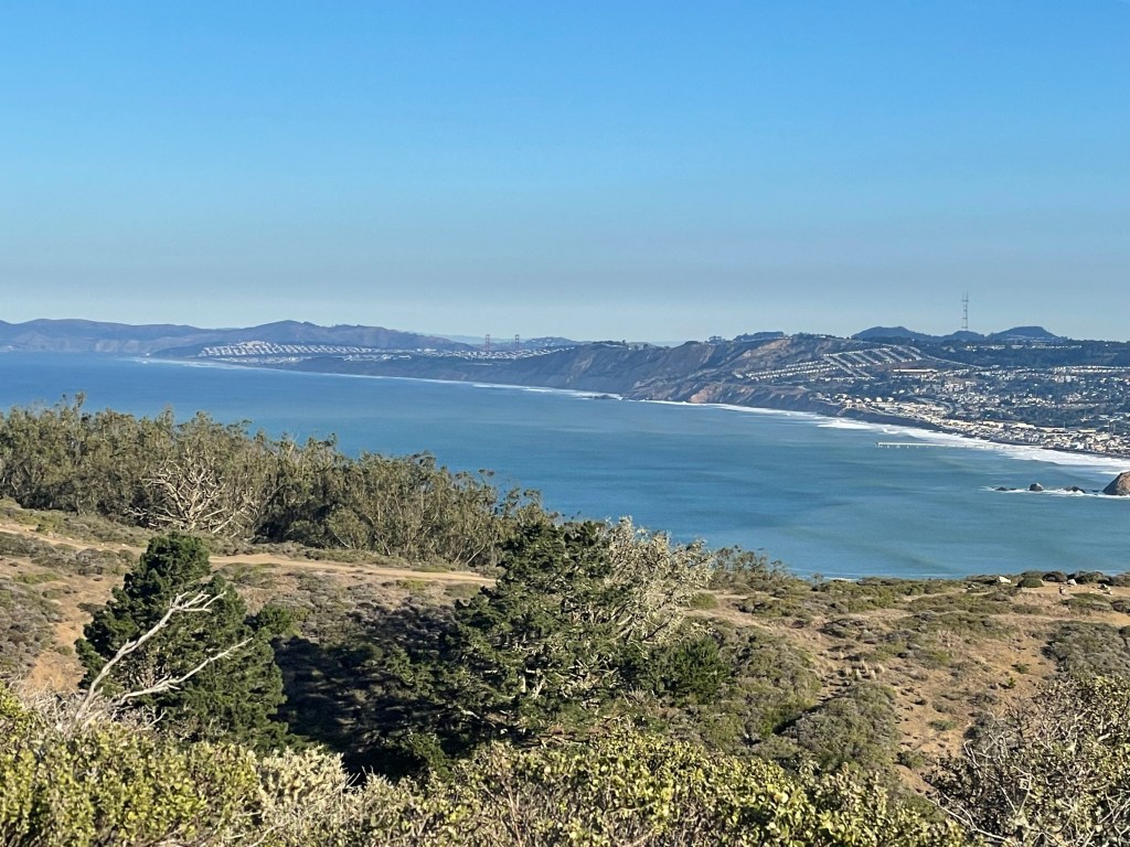 That same enchanted surprise stopped me in my tracks on a crystal clear day in the Pedro Point Headlands. On a trail that’s normally shrouded in fog, I rounded the bluff to a vision of the Golden Gate Bridge and Sutro Tower rising up from the city’s hills. Further north I saw mountains upon mountains lining the Pacific.
