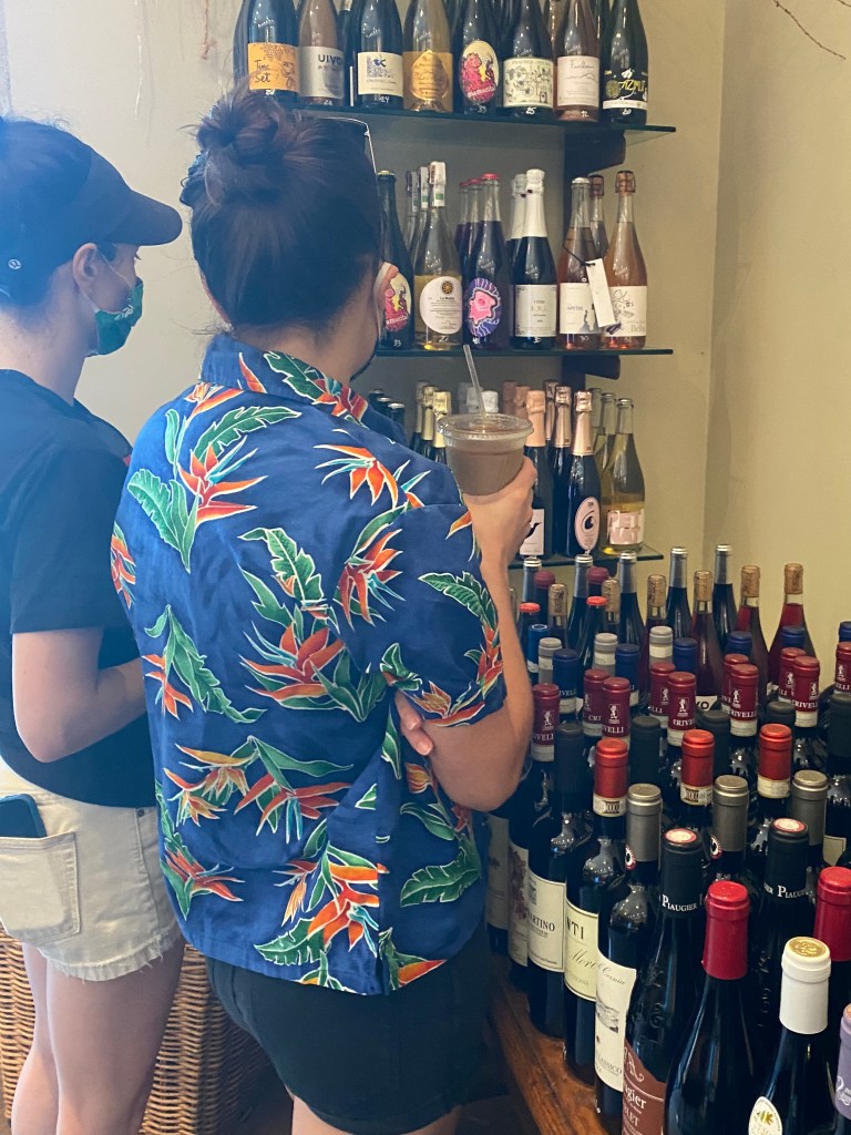 The final product out on the town! (Yes, I admit to sipping iced coffee from disposable plastic here)
