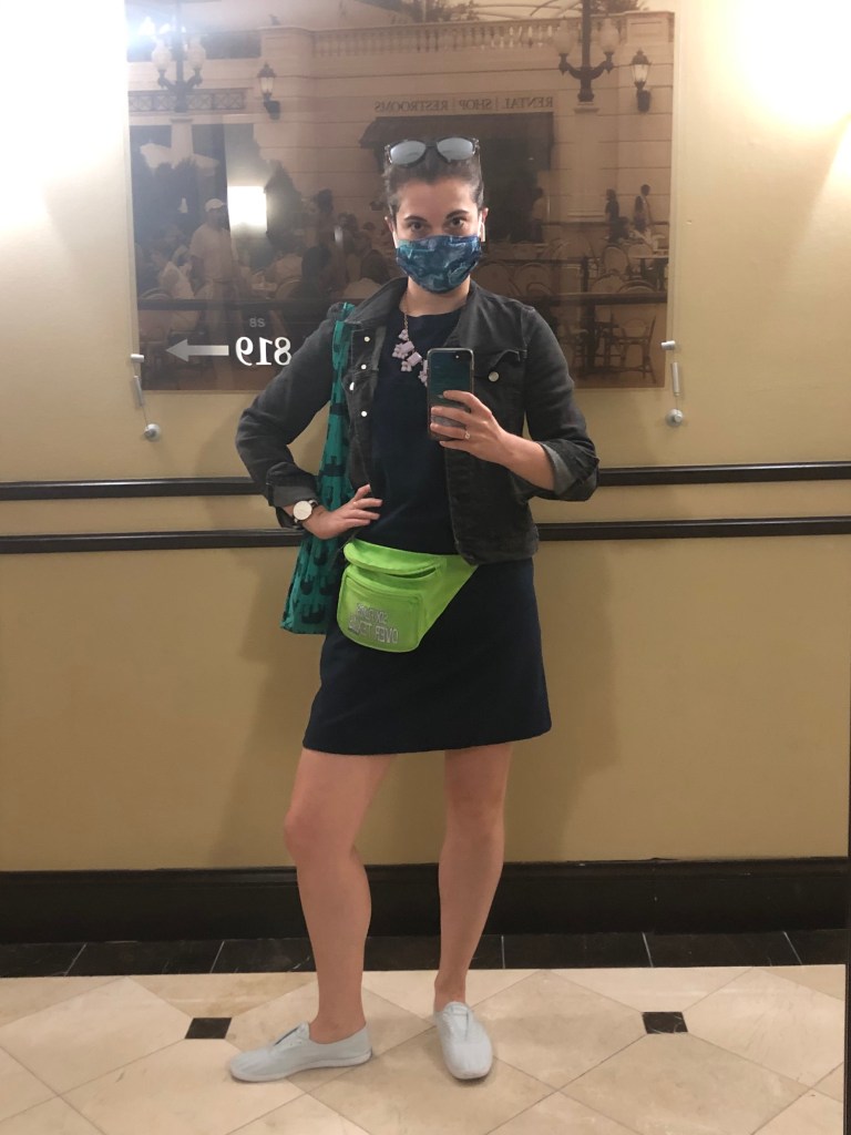 Highlight #2 At the end of 2018, when a business school ski trip (with costume parties every night) rolled around, I resisted the temptation to order everything with one-click, and instead weeded through Goodwill with my friend Amy. We found some *fabulous* costumes for not one, but four themed parties (including piecing together a Zenon Girl of the 21st Century costume and a neon 80’s outfit- they were out of this world). The “Six Flags Over Texas” lime green fanny pack (see cover photo) became my most convenient accessory this spring and summer.