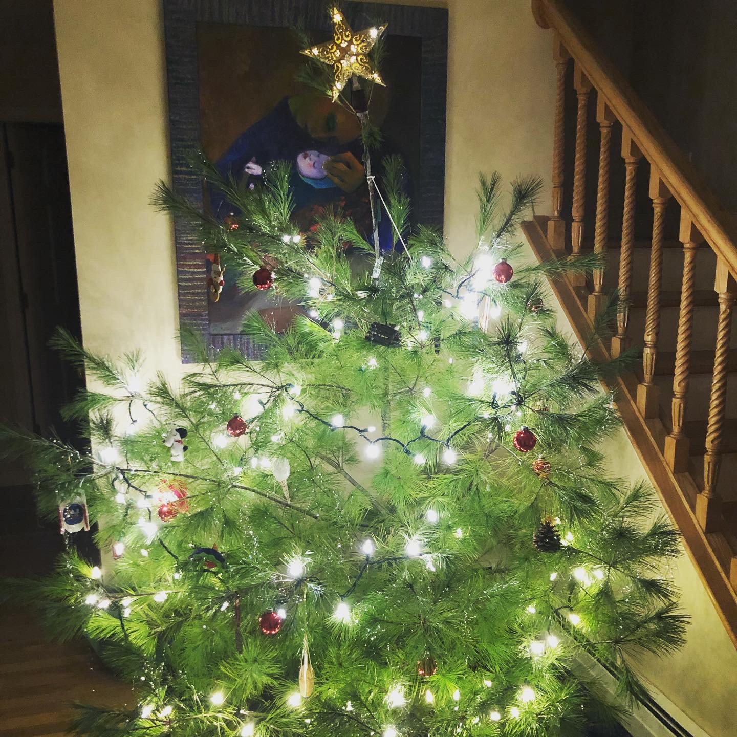 I was not-so-secretly ecstatic about this outcome. I had actually wanted to cut down a tree behind the house and have our very own “Charlie Brown” tree. Because we are lucky enough to live in the woods and own loppers to cut down a bushy young tree: I got my wish.