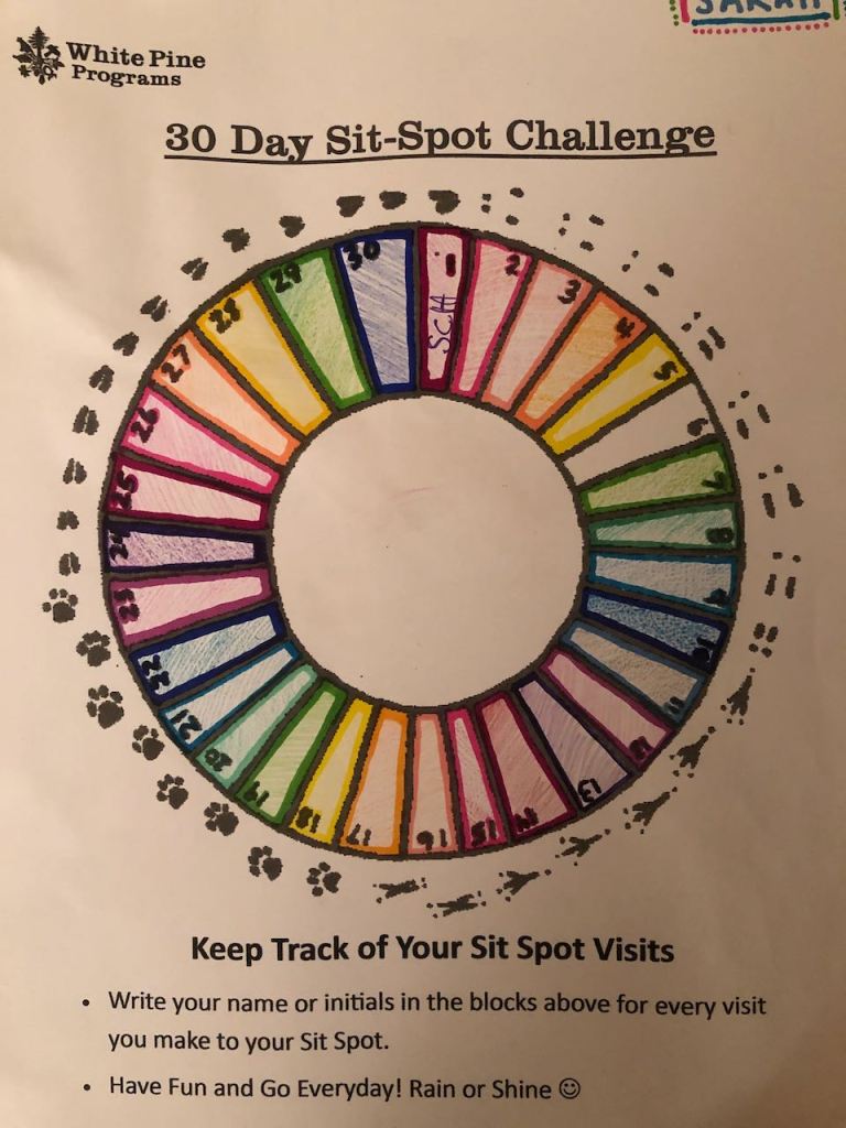 I completed my sit-spot challenge between March 23 – April 23, 2020. I sat in my sit-spot (defined as a spot anywhere in or near nature) for ~25 minutes each day for 30 days, no matter the weather. Each day I brought with me a camp chair, notebook, and pen. Phone on airplane mode, only to be used as a timer. A thermos of tea on the colder days. I wore snow pants or rain boots as needed (did I mention this was rain or snow or shine?), but it was early enough in the year that I didn’t need a mosquito net.